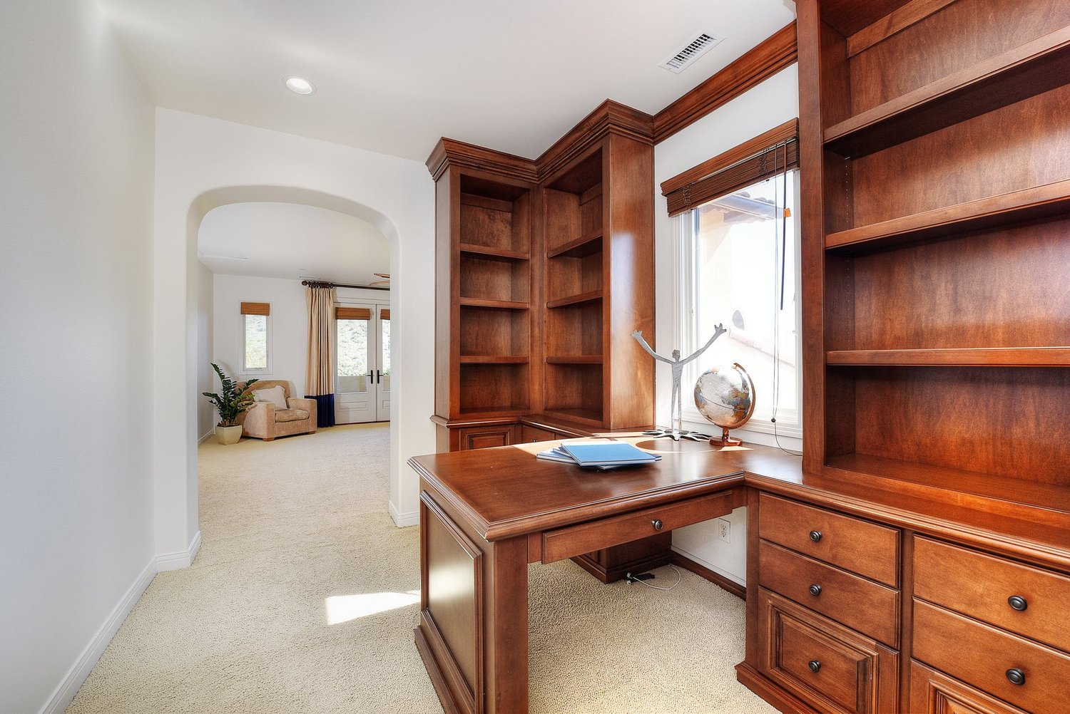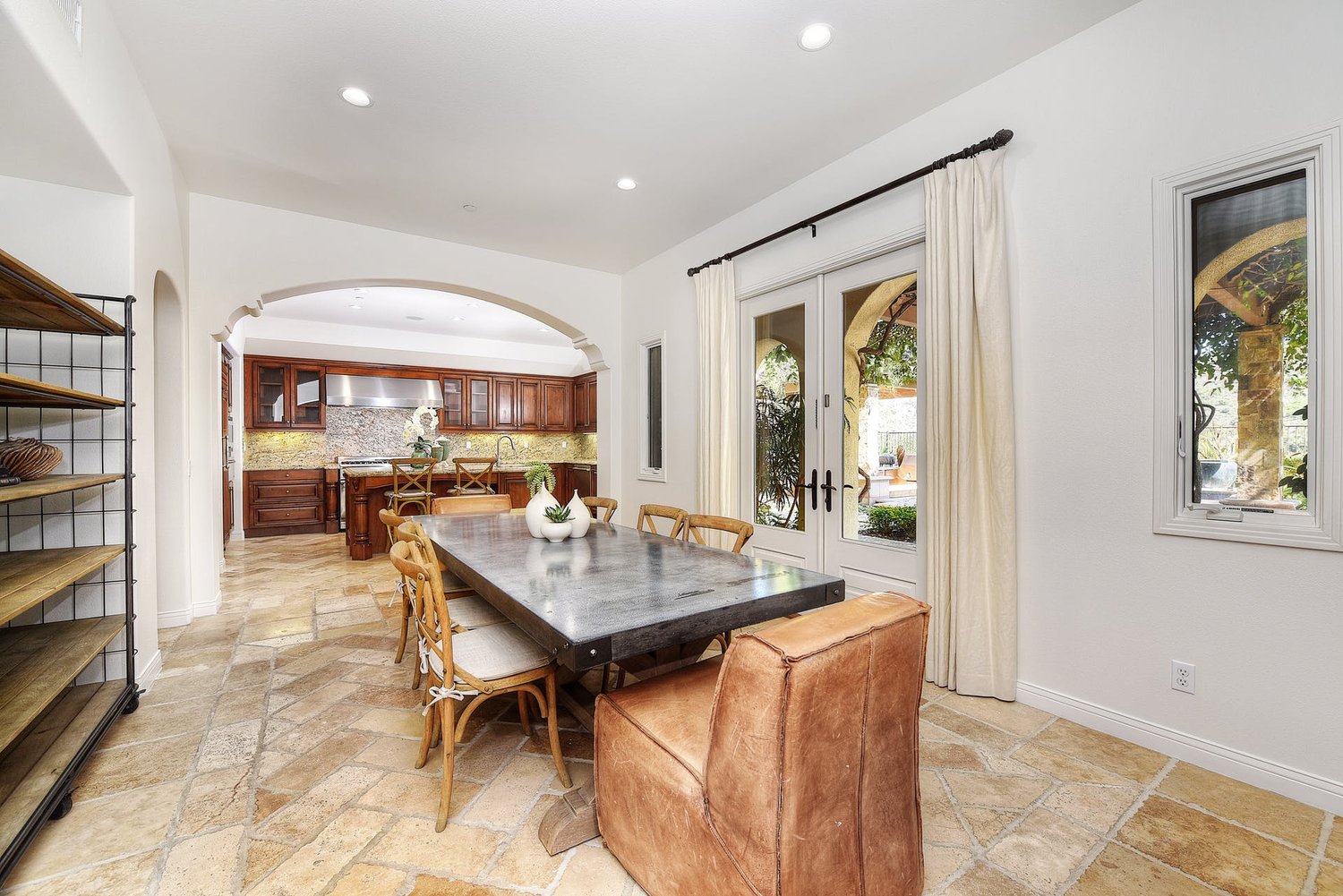 A beautiful, spanish style home with a grand ‘ole entry. So, this home was on the market for a while and then removed because the sellers decided to stay. Talk about good bones! Amazing courtyard, fountain, hot tub, pool, firepit, and monstrous kitchen! We shifted things up using the clients’ furnishings and after hearing their wishlist, did personal shopping for them to boost the home’s comfort and function. The biggest effort was made ‘balancing’ the furniture with the large scale of the home. It sometimes goes against one’s intuition, but oftentimes, using bigger scale furniture in smaller spaces can really make it feel bigger. And in this house – bigger is better!